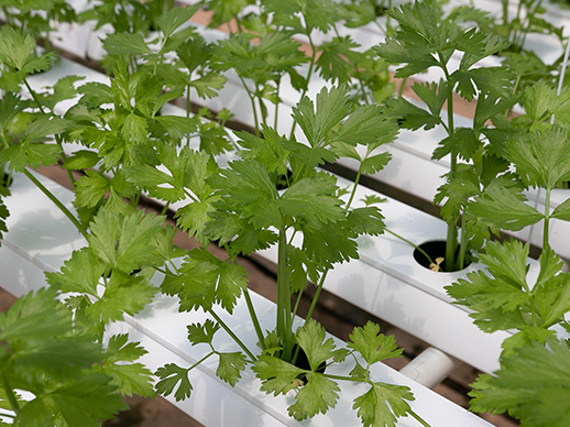 作物に必要な栄養素を最適な濃度で供給する栄養水の自動調合・供給システムを構築しています。
